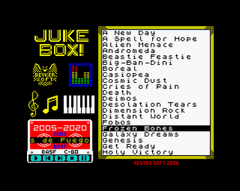 En este programa para ZX Spectrum, desarrollado por Restos Soft, tenéis reunidos mas de 70 temas musicales que a lo largo de los años he compuesto para diversos juegos de ordenadores 8 bits.